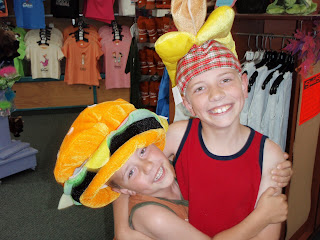 Jake has a hamberger on his head, and Josh has a hotdog on his head. I laughed so hard with these, they were $16 a hat, otherwise I probably would have bought these two. Hahaha!!